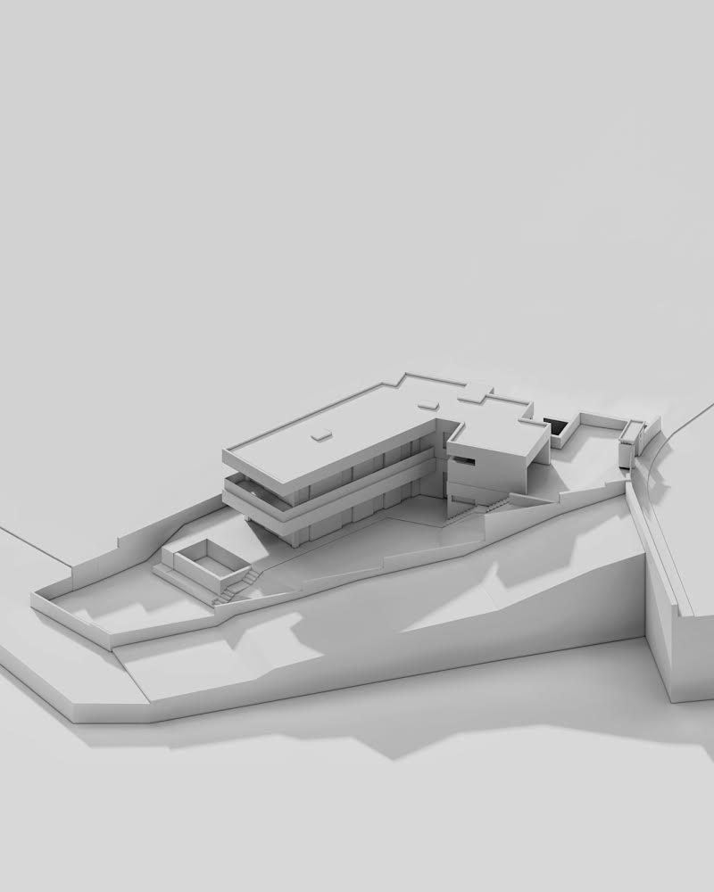 El acceso —tanto peatonal como rodado— se produce desde la planta primera, resolviendo así la topografía del lugar. La casa se asienta de manera orgánica, abrazando su entorno y estableciendo una relación fluida entre interior y exterior, donde la luz y las vistas se convierten en los verdaderos protagonistas del proyecto.